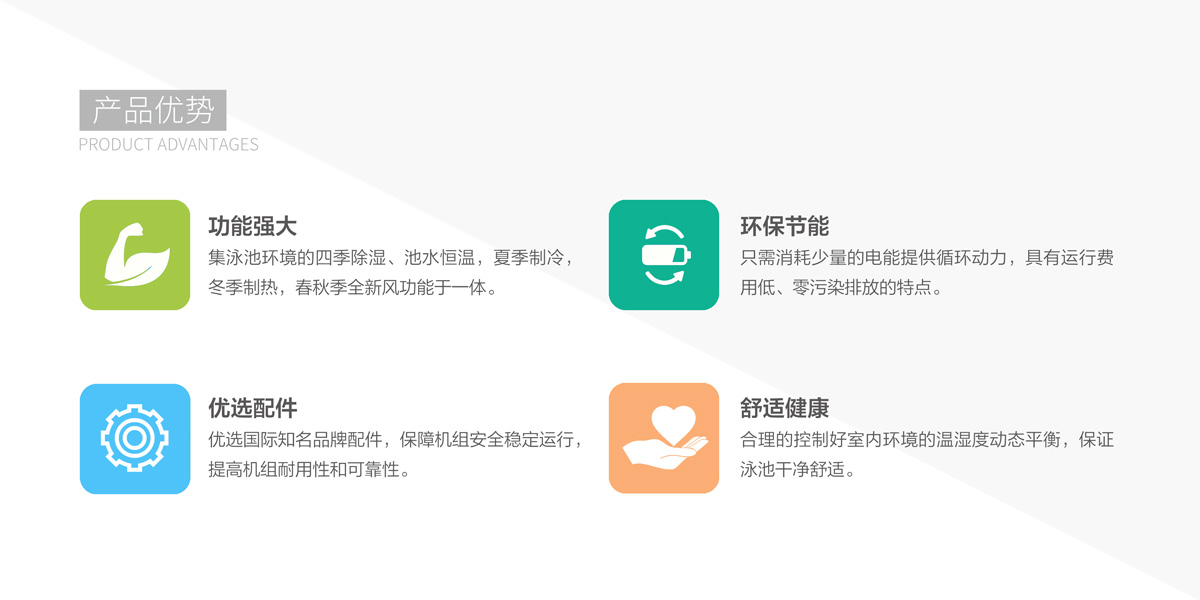 體育館需要舉行各類賽事,對觀眾和運動員來說,館內美觀舒適度尤為重要,天舒泳池熱泵系統維持游泳環境溫濕度動態平衡,創造健康舒適美觀的環境。
